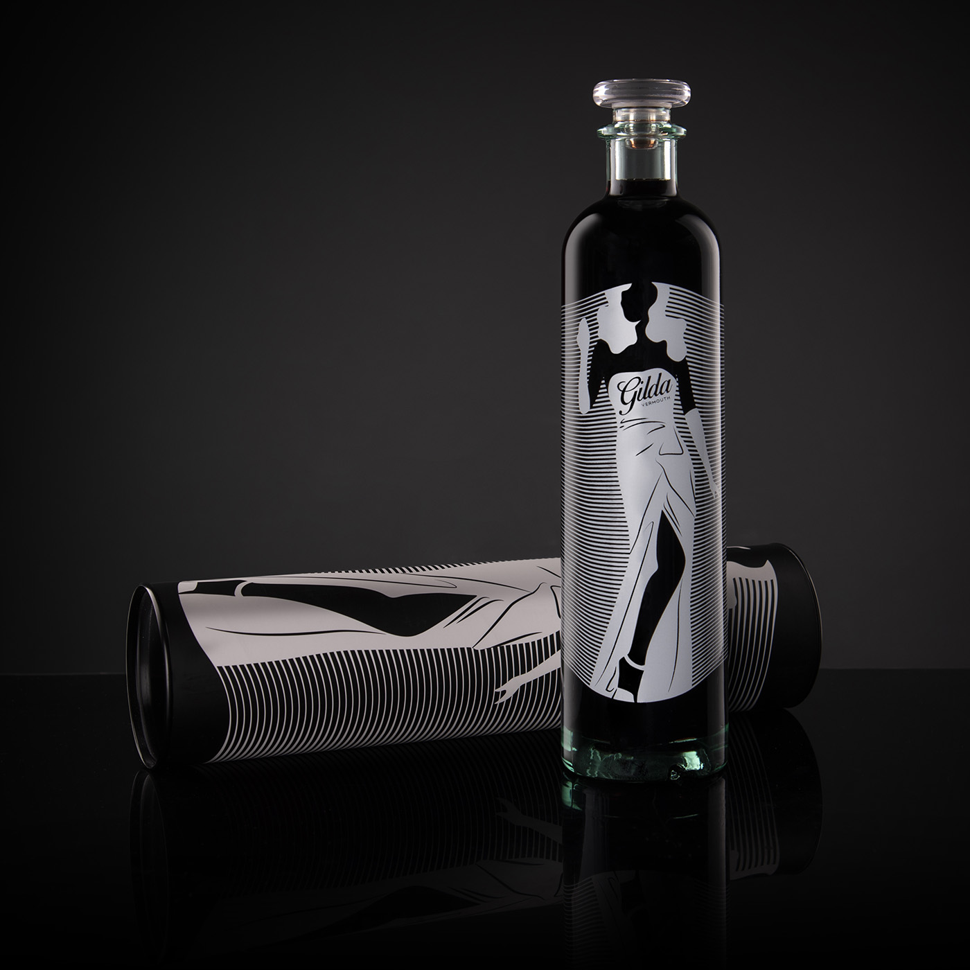吉爾達是來自 Bodega Latarce 的新苦艾酒。她以麗塔海華絲主演的電影命名。設計靈感來自電影中主角的著名舞蹈,該舞蹈因誹謗而被許多國家禁止。為此,我們選擇了一個風格化的瓶子,并絲網(wǎng)印刷了輪廓以及具有“莫爾”效果的線條,并賦予整體活力,因為當瓶子移動時,人物似乎也在移動。苦艾酒有白色版本,設計相同,但采用黑色絲網(wǎng)印刷。為瓶身加冕,vinolok 瓶蓋與刻字一起使這款瓶身成為一款原創(chuàng)而優(yōu)雅的套裝。