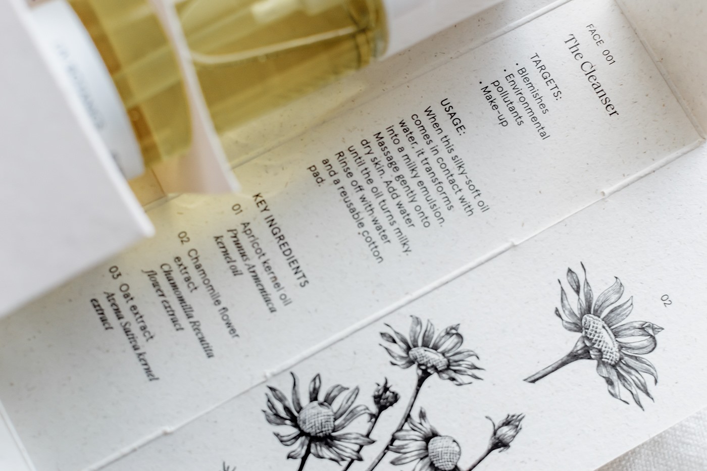 為了最大限度地減少品牌的碳足跡,我們?cè)诰嚯x阿姆斯特丹市幾公里遠(yuǎn)的大象草纖維上使用植物基無(wú)毒墨水進(jìn)行本地印刷。主包裝盒不使用膠水,展開(kāi)平展,展示每種產(chǎn)品中包含的關(guān)鍵成分的植物圖及其植物名稱和信息。用于瓶子和罐子的標(biāo)簽不含塑料,而用于運(yùn)輸?shù)亩?jí)包裝、紙帶和包裝紙是 100% 可回收和可回收的,并使用無(wú)毒的植物性油墨印刷。