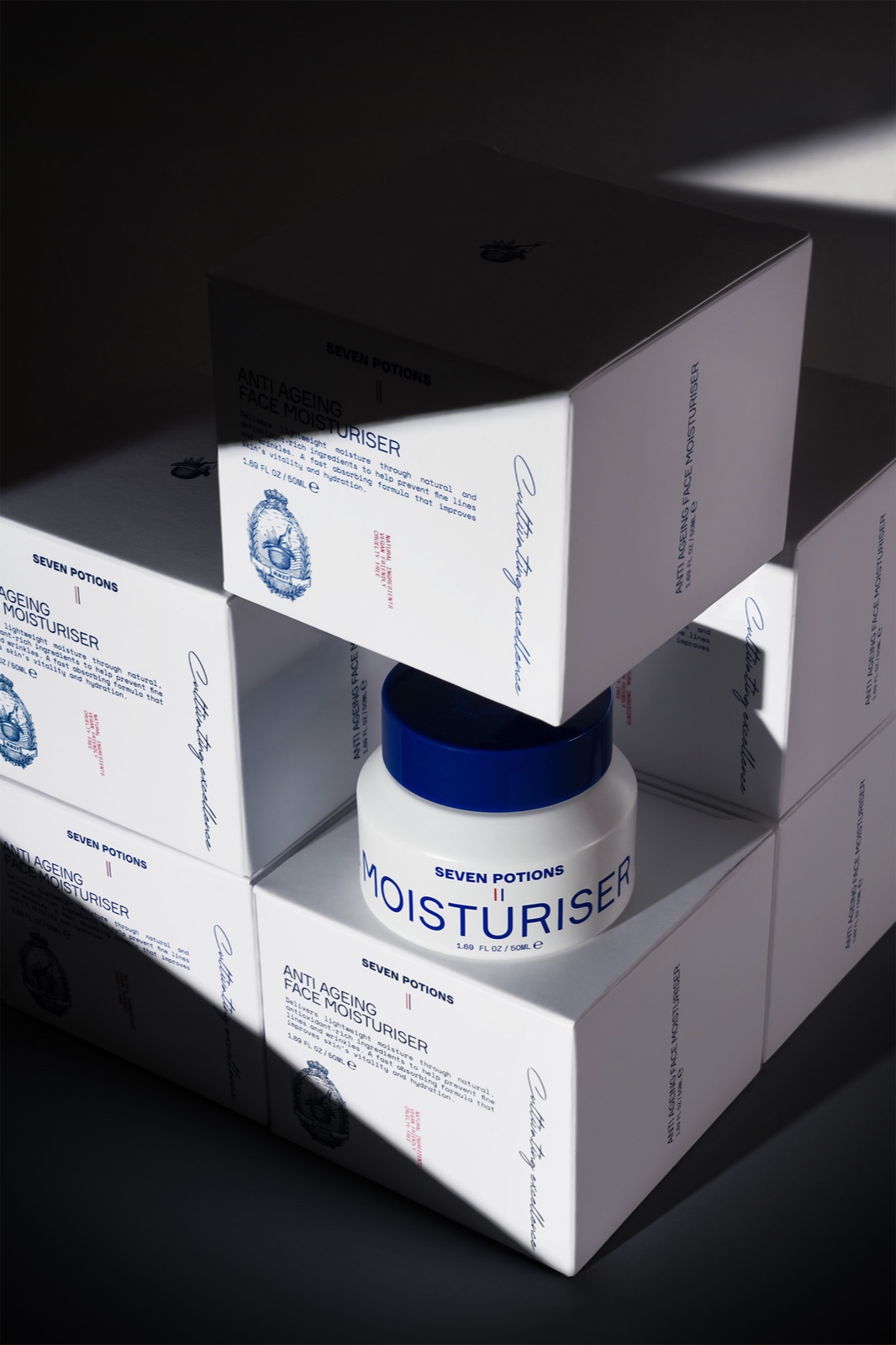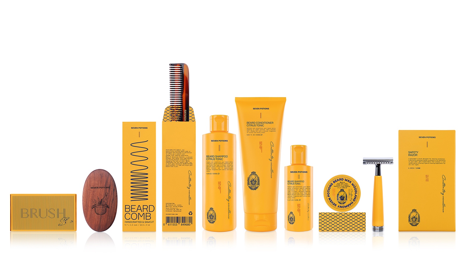 Seven Potions是一個總部位于倫敦的品牌,為現(xiàn)代紳士提供美容產(chǎn)品。當(dāng)包裝設(shè)計師在設(shè)計他們的視覺語言和包裝時,努力追求真實性和專業(yè)性。品牌設(shè)計師設(shè)計了一個標(biāo)志,散發(fā)出該品牌獨特的故事,抓住了古典與現(xiàn)代之間的平衡。該符號的靈感來源于定義英國歷史的標(biāo)志,而版式則與現(xiàn)代保持聯(lián)系。