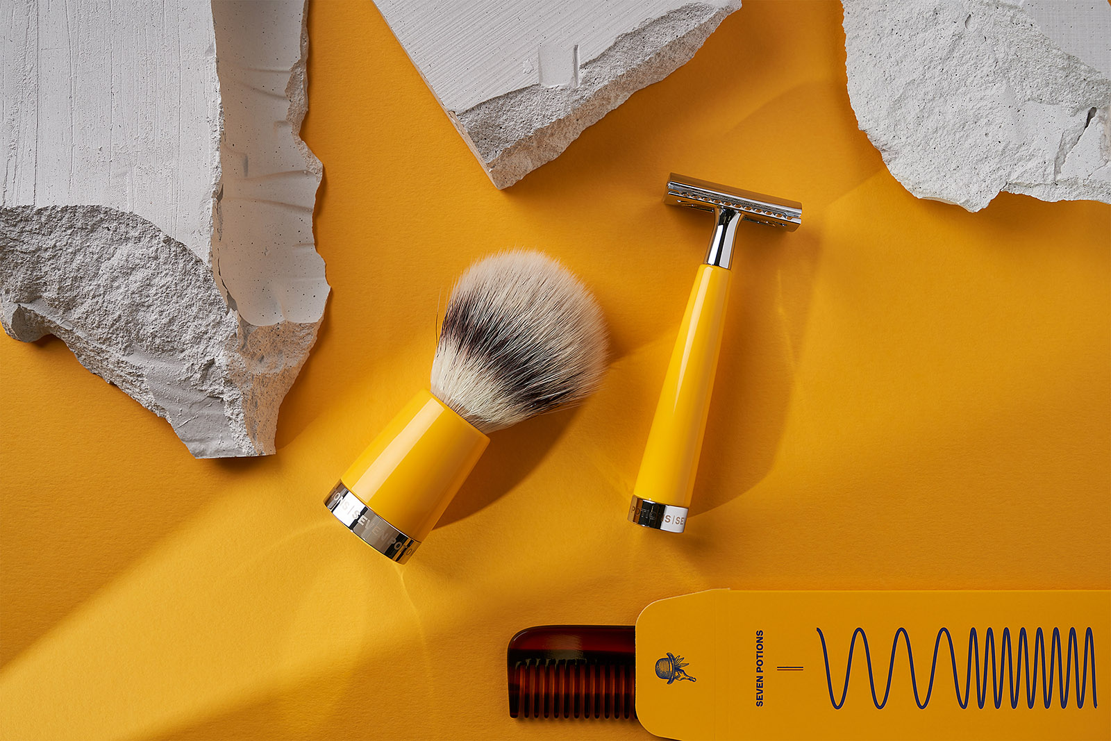 創(chuàng)作團隊開發(fā)了一種包裝系統(tǒng),使容器具有內(nèi)聚特性,提供強大而獨特的外觀和感覺,同時通過開發(fā)的顏色編碼,可以成功地適應(yīng)該品牌提供的不同產(chǎn)品線。黃色是核心品牌顏色,樂觀地主導(dǎo)著胡須護(hù)理產(chǎn)品的分配器;灰色代表頭發(fā)系列,純白代表護(hù)膚品。作為視覺系統(tǒng)開發(fā)的一部分,每個容器的手寫版式上都有“培養(yǎng)卓越”這一短語,而紅藍(lán)垂直線則是指標(biāo)志性的英國顏色,確認(rèn)了該品牌的倫敦光環(huán)。