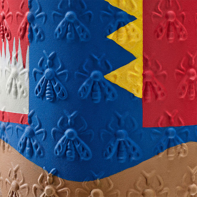 每一個(gè)蜂瓶瓶瓶口和瓶塞(Pochet du Courval)都由法國裝飾畫家Astrid de Chaillé手繪。它采用了馬蒂斯作品中的六種顏色和風(fēng)格化形式??偛课挥诎屠璧腖a Fabrique Singulière是手工藝人與奢侈品牌合作的專家,他支持嬌蘭的項(xiàng)目。