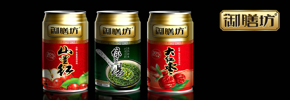 項目背景:御膳坊的系列健康飲品分為綠豆湯、山里紅、大紅棗三款,都是谷物和水果中的滋補佳品。在包裝設計中,我們運用原料天然誘人的形態(tài)和色彩來區(qū)分系列產品,并在罐頂采用金色背景裝飾和中式古典紋飾來凸顯高品味的產品特質。