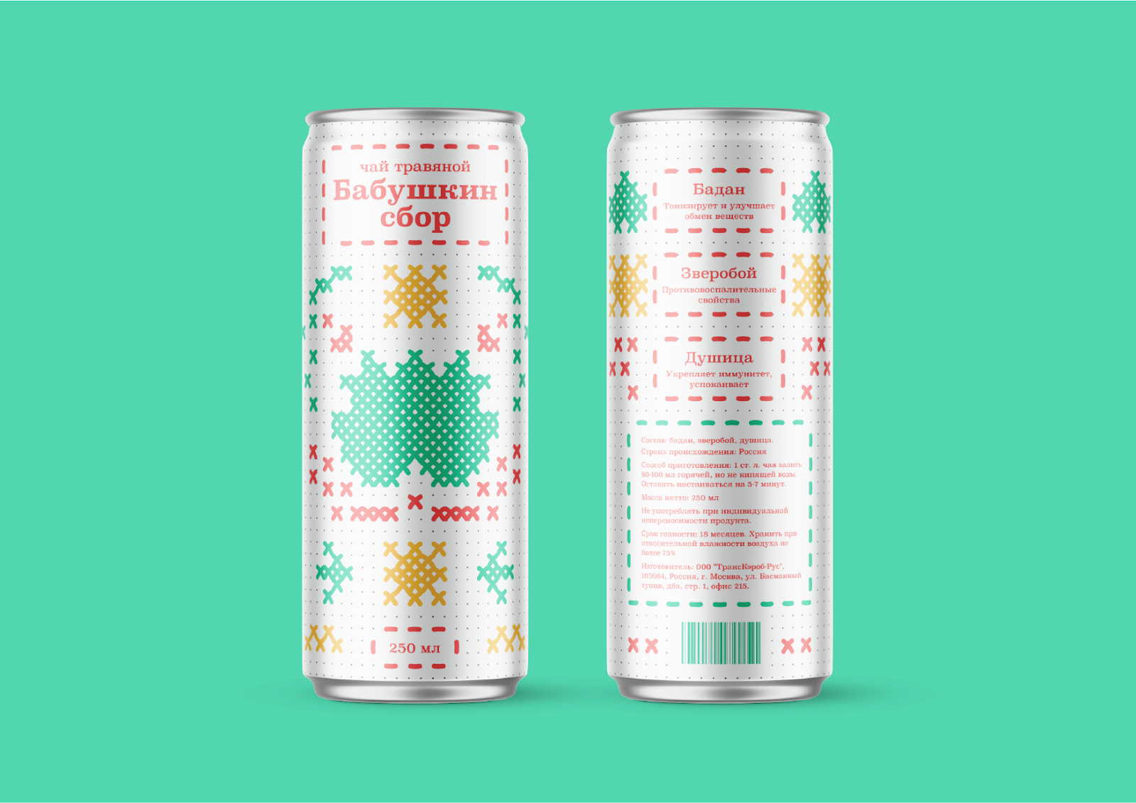 “祖母的收藏”是一個(gè)冰茶品牌。對(duì)于現(xiàn)代人來說,這是一種飲料,他們想念與祖母在村子里度過的童年,并想再次品嘗她釀造的芬芳的涼茶。設(shè)計(jì)靈感來自我們祖母繡的十字繡和圖案。
