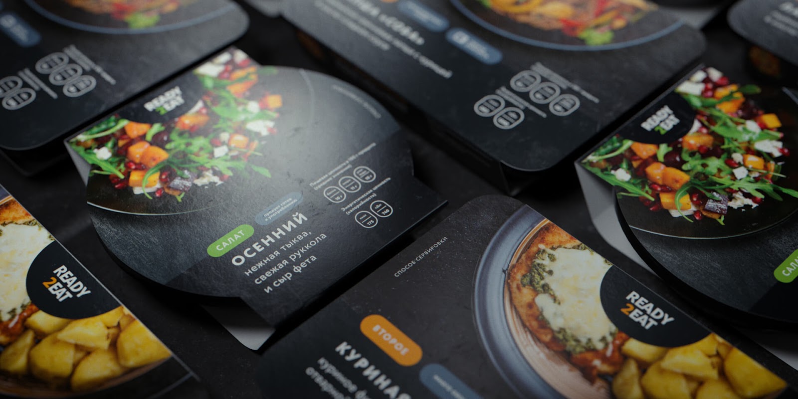在開發(fā)設(shè)計(jì)時(shí),要考慮幾個(gè)要點(diǎn)。首先,該生產(chǎn)線適用于大量產(chǎn)品。計(jì)劃一段時(shí)間后,將包括多達(dá)一百種菜肴和飲料。用于此類品牌的企業(yè)標(biāo)識(shí)系統(tǒng)應(yīng)考慮所有擴(kuò)展產(chǎn)品范圍的選擇。其次,在購買任何產(chǎn)品之前,客戶必須注意其包裝,感到食欲并想嘗試?yán)锩娴臇|西。同時(shí),整個(gè)READY2EAT系列都以密閉包裝出售-食物不可見。這意味著,設(shè)計(jì)應(yīng)引起注意并激發(fā)食欲。