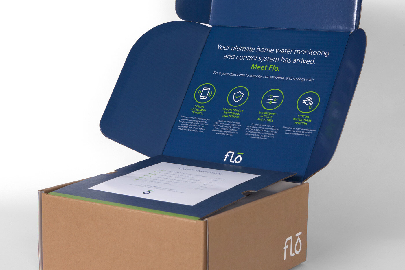 對(duì)于包裝設(shè)計(jì),我們創(chuàng)建了許多不同的選項(xiàng),以反映產(chǎn)品的核心理念以及Flo希望在客戶的思想中觸發(fā)的感覺(jué)。其中,選擇了以下帶有瓦楞紙箱的部件,它成為客戶體驗(yàn)的重要組成部分。然后,我們將相同的樣式應(yīng)用于諸如Smart Water Detector之類(lèi)的未來(lái)產(chǎn)品。
