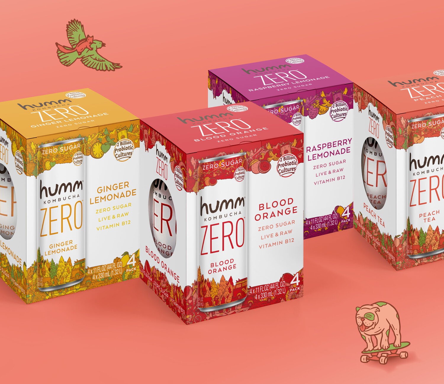作為原始的和最大的康普茶品牌之一,Humm的彩色標(biāo)簽和主流口味始終吸引著更多的新消費者進(jìn)入這一類別。休姆(Humm)不僅依靠他們的成功,還推出了首款零糖紅茶菌,從而再次振興了貨架。零顯然是個大新聞,但我們的設(shè)計既精心設(shè)計了手工制作的徽標(biāo),又設(shè)法保留了該品牌明顯創(chuàng)意和古怪的角色。