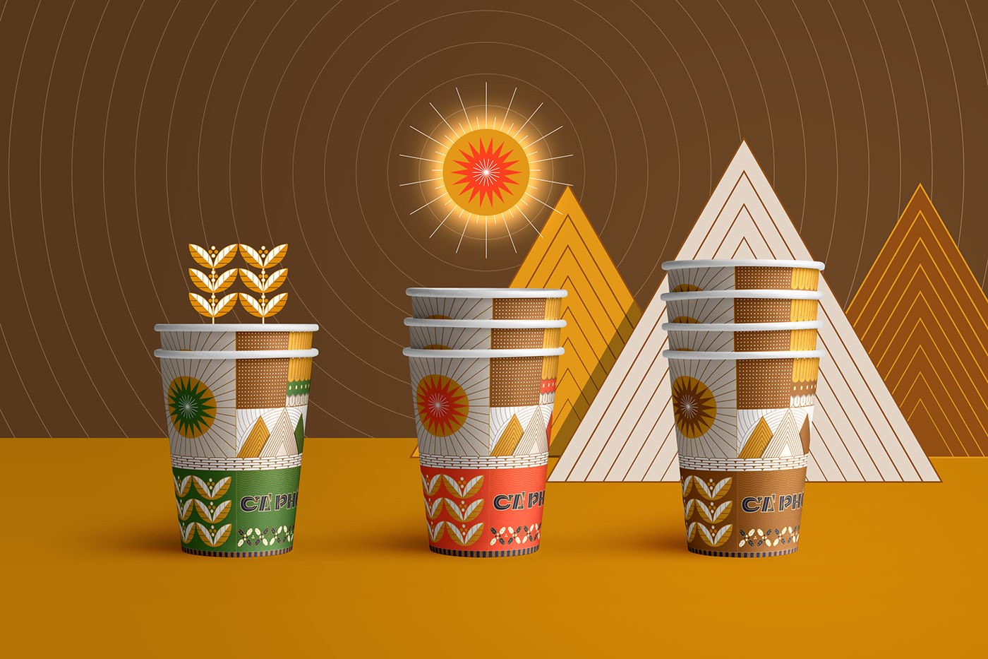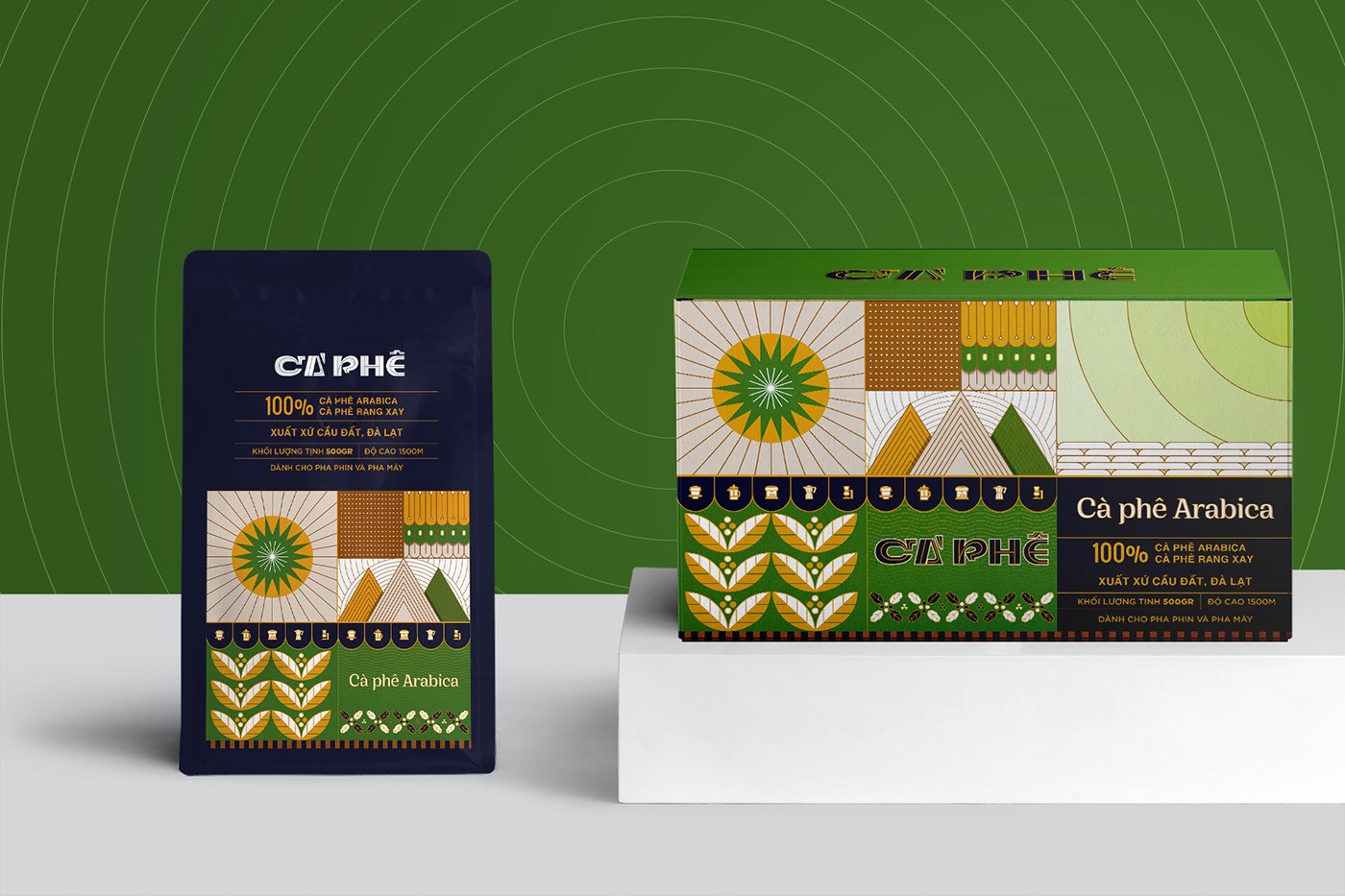 關(guān)于標(biāo)志,字體以咖啡作為標(biāo)志,根據(jù)居住在中部高地高地(如達(dá)農(nóng)、林同)的人們的文化和風(fēng)格進行風(fēng)格化。字體風(fēng)格化,以增加咖啡包裝的身份和美感。