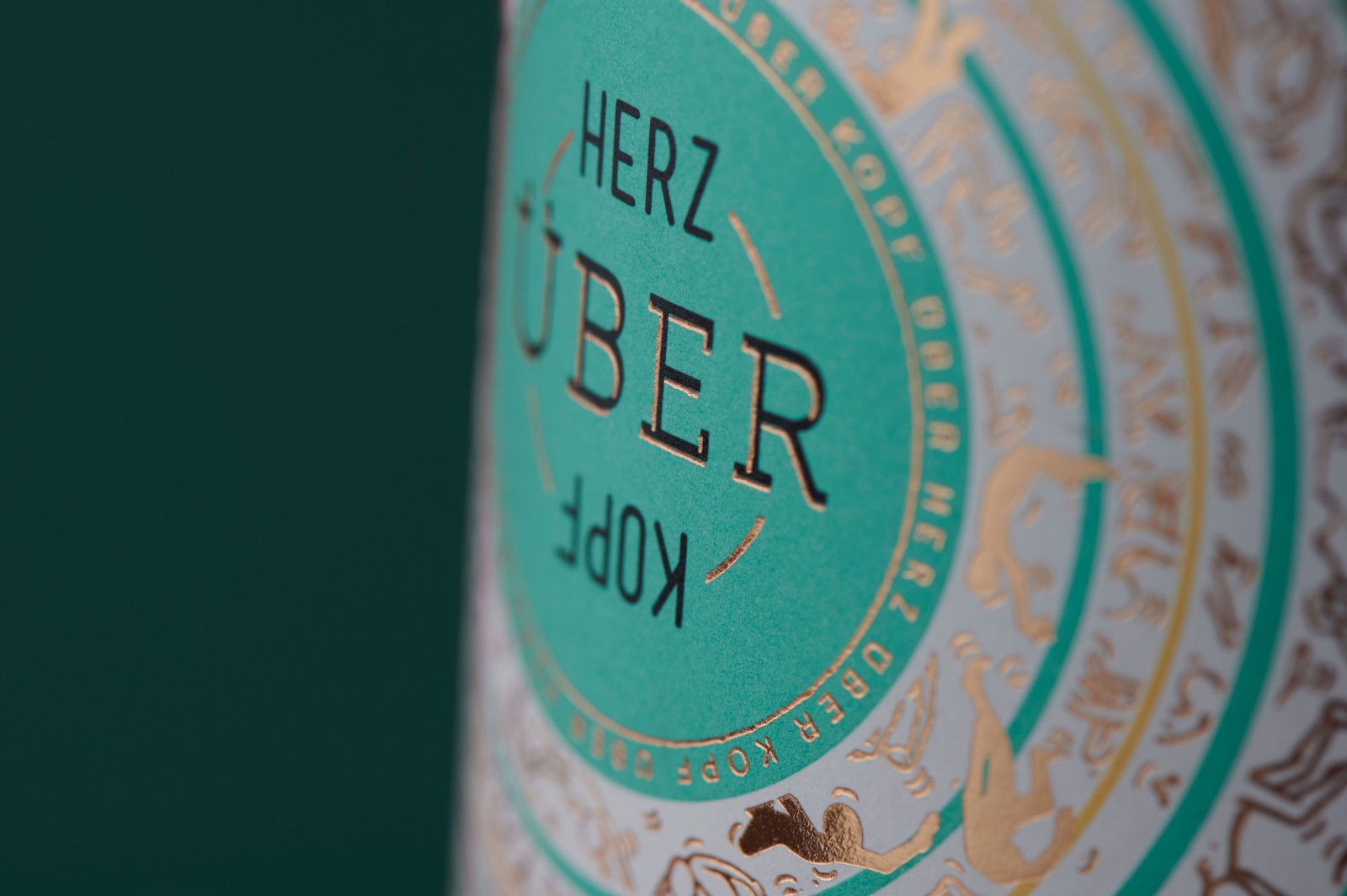 設(shè)計(jì)一經(jīng)簽署,德國(guó)的 Vollherbst Labels 就提供了印刷和整理概念:帶有銅箔的優(yōu)雅壓花標(biāo)簽可以提升標(biāo)簽的高度,同時(shí)也是一個(gè)適合預(yù)算的選擇。